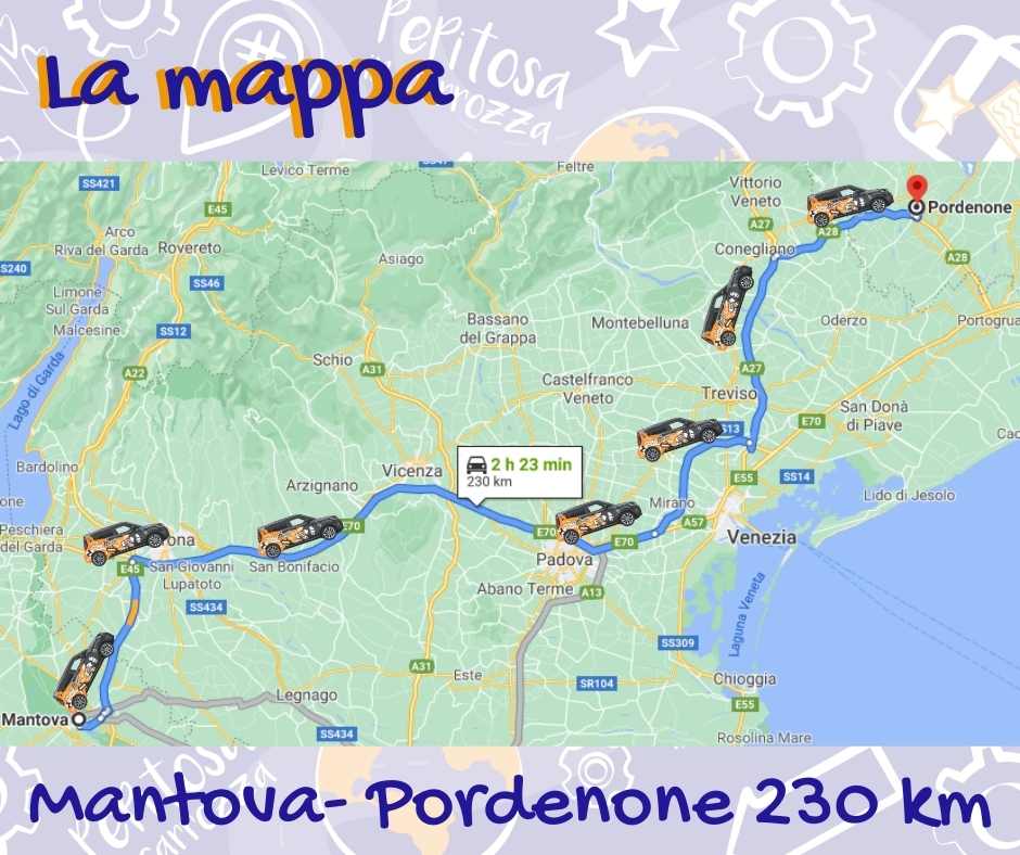 Siamo partiti da Mantova a bordo della nostra Pepy mobile, 230 km attraverso la punta orientale della Lombardia, le campagne venete e l’approdo in Friuli Venezia Giulia, uscendo a Porcia. E’ una meta raggiungibile sia in auto, sia in treno senza grossi problemi di spostamento per raggiungere il centro, vista la sua misura abbastanza ridotta anche da gestire sia con una carrozzina manuale o elettrica. Vista la stagione ancora calda, non c’è stato bisogno di utilizzare mezzi pubblici o riprendere la macchina per spostarsi nel centro storico.